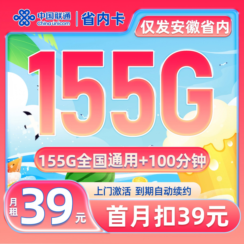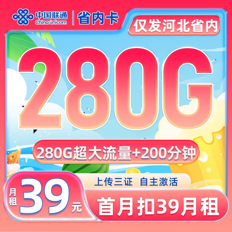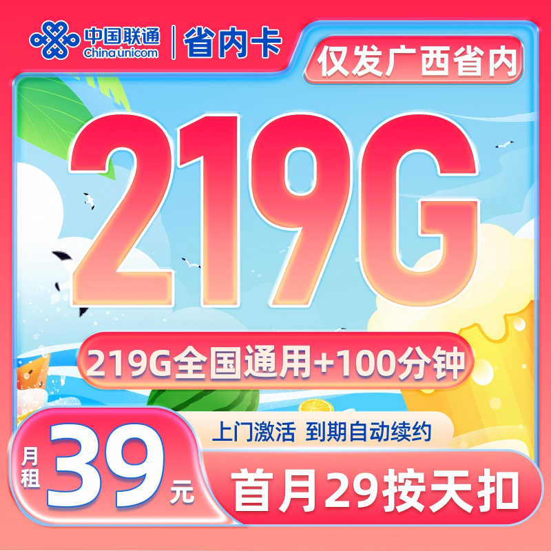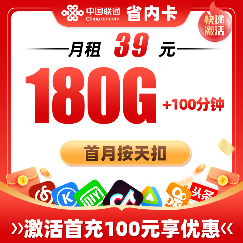 湖南省内联通39元180GB+100分钟【仅发湖南】