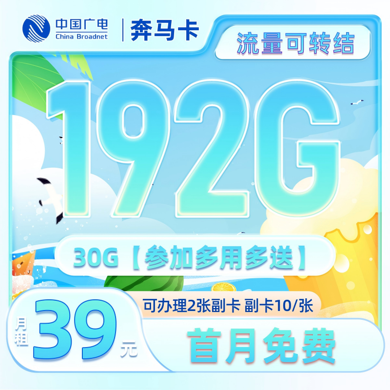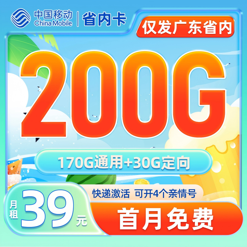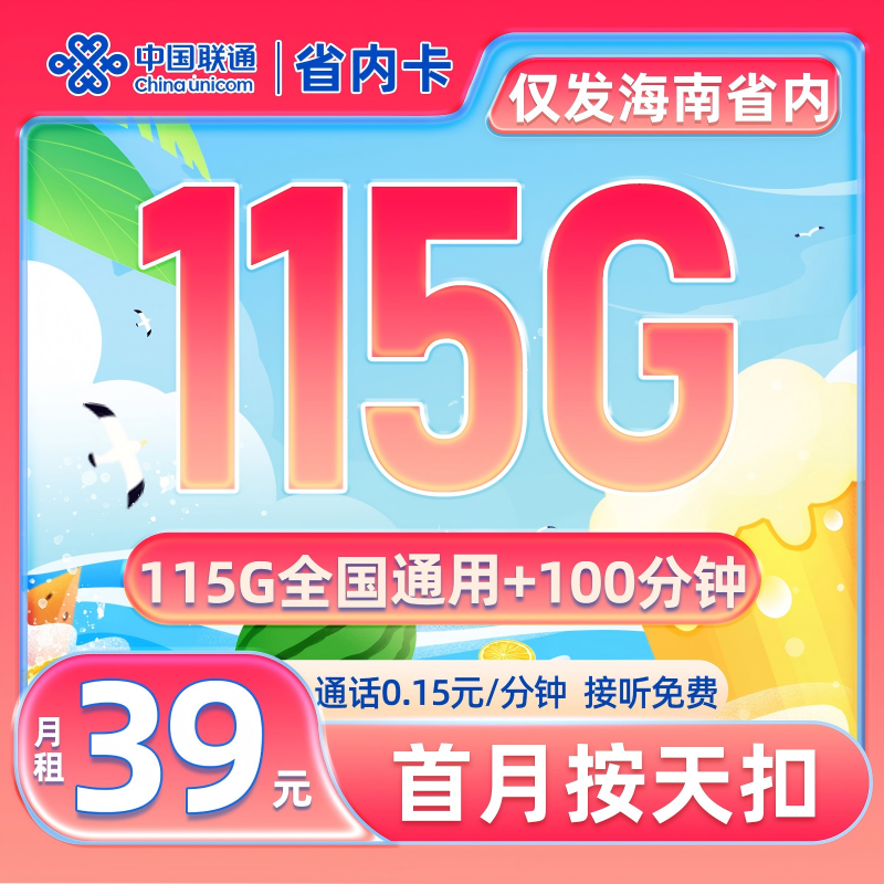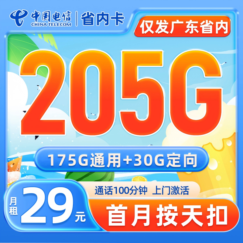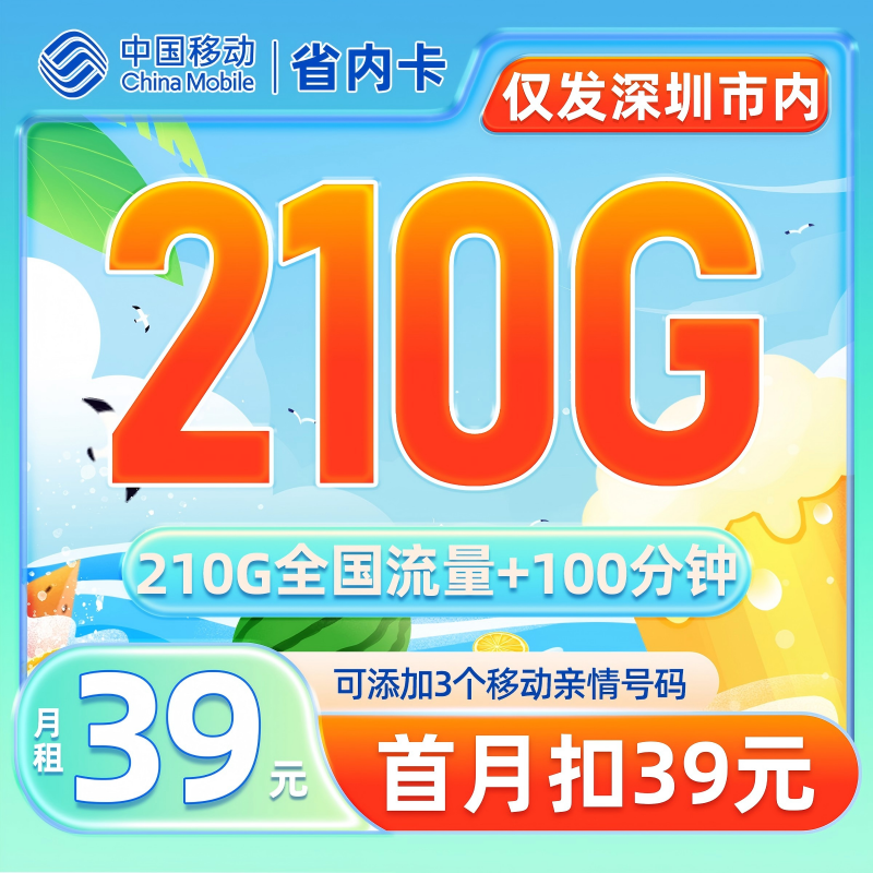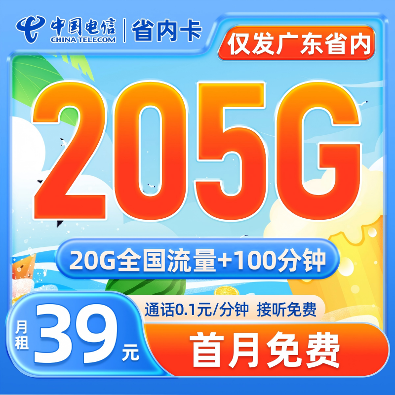 39元205G全国流量+100分钟通话(首月205G流量按天折算到账不超套餐免费用)