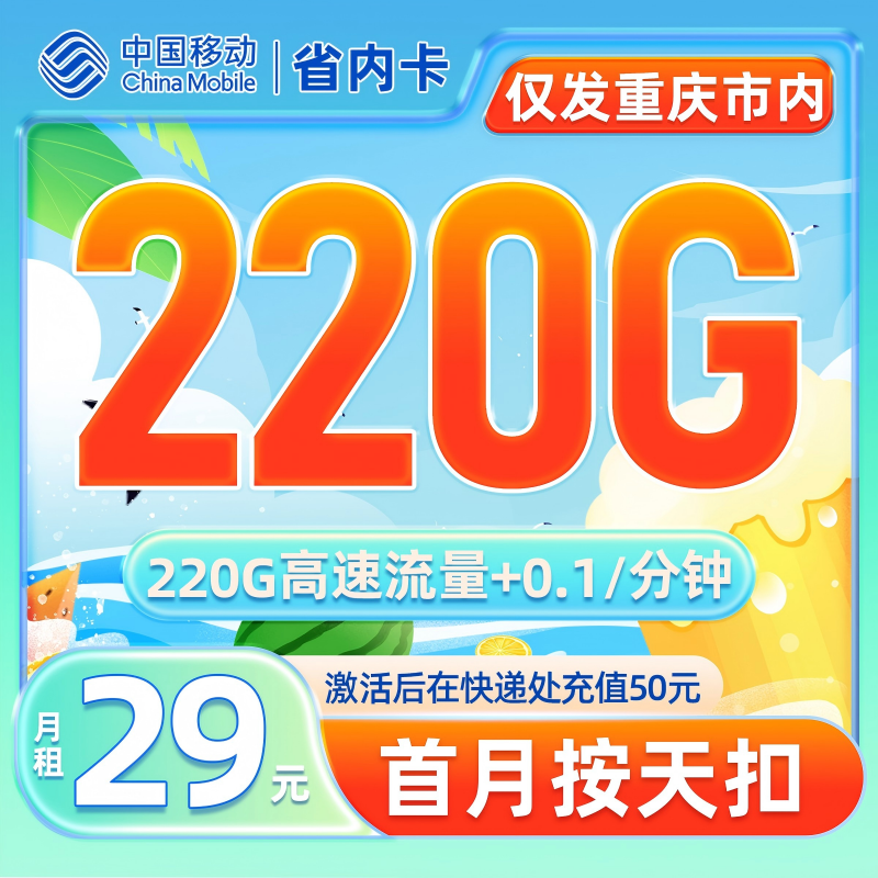 激活当月50G按天折算免费体验(30天后叠加至205G流量)